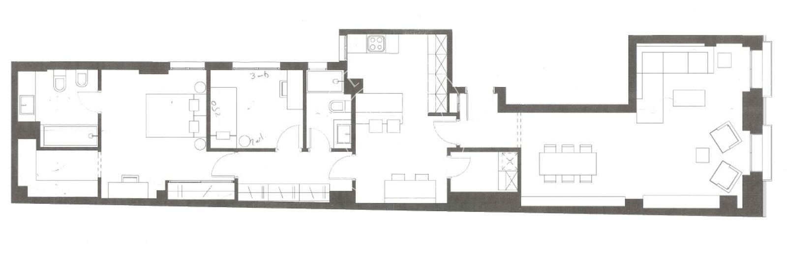 Originalmente la vivienda disponía de 2 dormitorios, pero se habilitó un tercer dormitorio aprovechando parte del salón. Actualmente, tanto ese dormitorio como el salón disfrutan de balcones exteriores, aportando luz y una agradable sensación de amplitud.