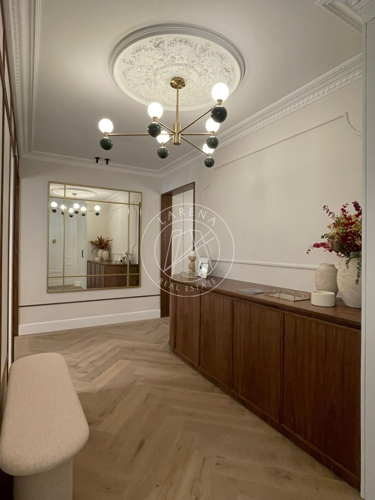 Exclusiva vivienda en venta situada en la calle López de Hoyos, en una de las zonas más consolidadas y bien comunicadas del centro de Madrid. Ubicada en la quinta planta de un edificio con elegante fachada clásica de 1934 y servicio de portería física, esta propiedad de 256 m² ha sido íntegramente reformada y se entrega completamente amueblada, lista para entrar a vivir. La orientación sur y los dos balcones a la calle garantizan una luminosidad excepcional durante todo el día.