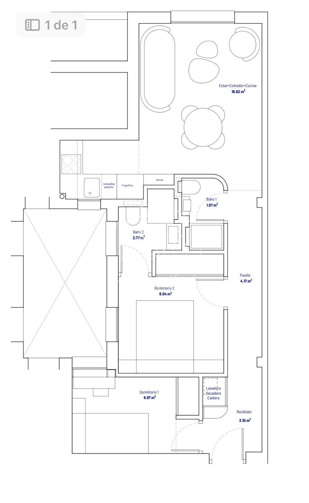 La vivienda cuenta con 67 m² catastrales y se organiza en 2 dormitorios: un dormitorio principal doble con baño en suite y un segundo dormitorio individual, ideal como habitación auxiliar, despacho o cuarto de invitados. Dispone de 2 baños completos y una agradable zona de día con salón y cocina integrados, perfecta para un estilo de vida cómodo y actual.